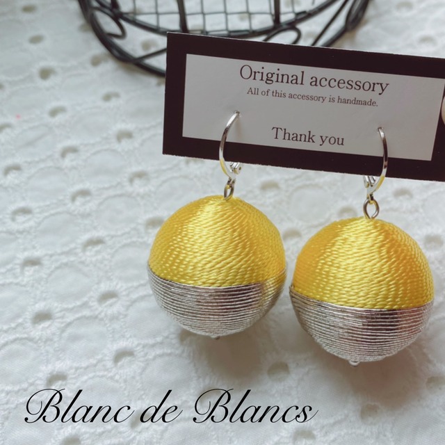 お顔まわりでゆらゆら揺れてコロンと可愛いピアスです✨ 夏にぴったりなイエローとメタリックなシルバーを合わせました✨ マスクをしていてもはずれにくいようなフックタイプのピアスで仕上げました☺️ ボンボンシリーズの軽さと日本製のなめらかな糸の発色もお楽しみください♡ こちらのボンボンサイズは2.5cmです お品物はオーダー頂いてからお一人お一人に合わせてお作りさせて頂いております☺️ そのためお届けまでに1週間程度かかりますのでご了承下さい (お急ぎの方はご相談下さい) 撮影時の光の加減などにより、実際のお色味と異なる場合がございます なるべく実物のお色と近くなるように撮影しておりますがご了承下さいませ