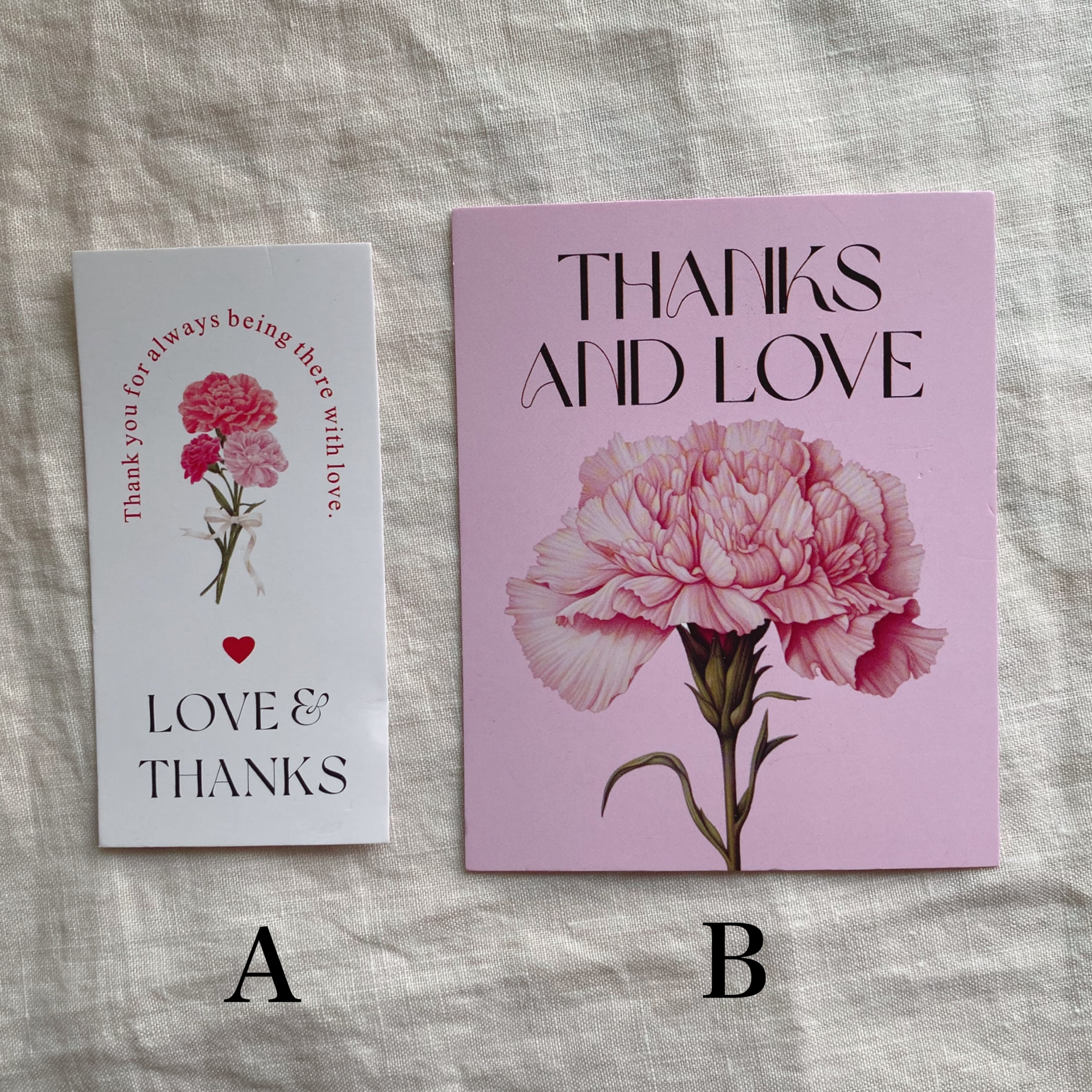 母の日用には、選べるカーネーションのミニカードをお付けします。