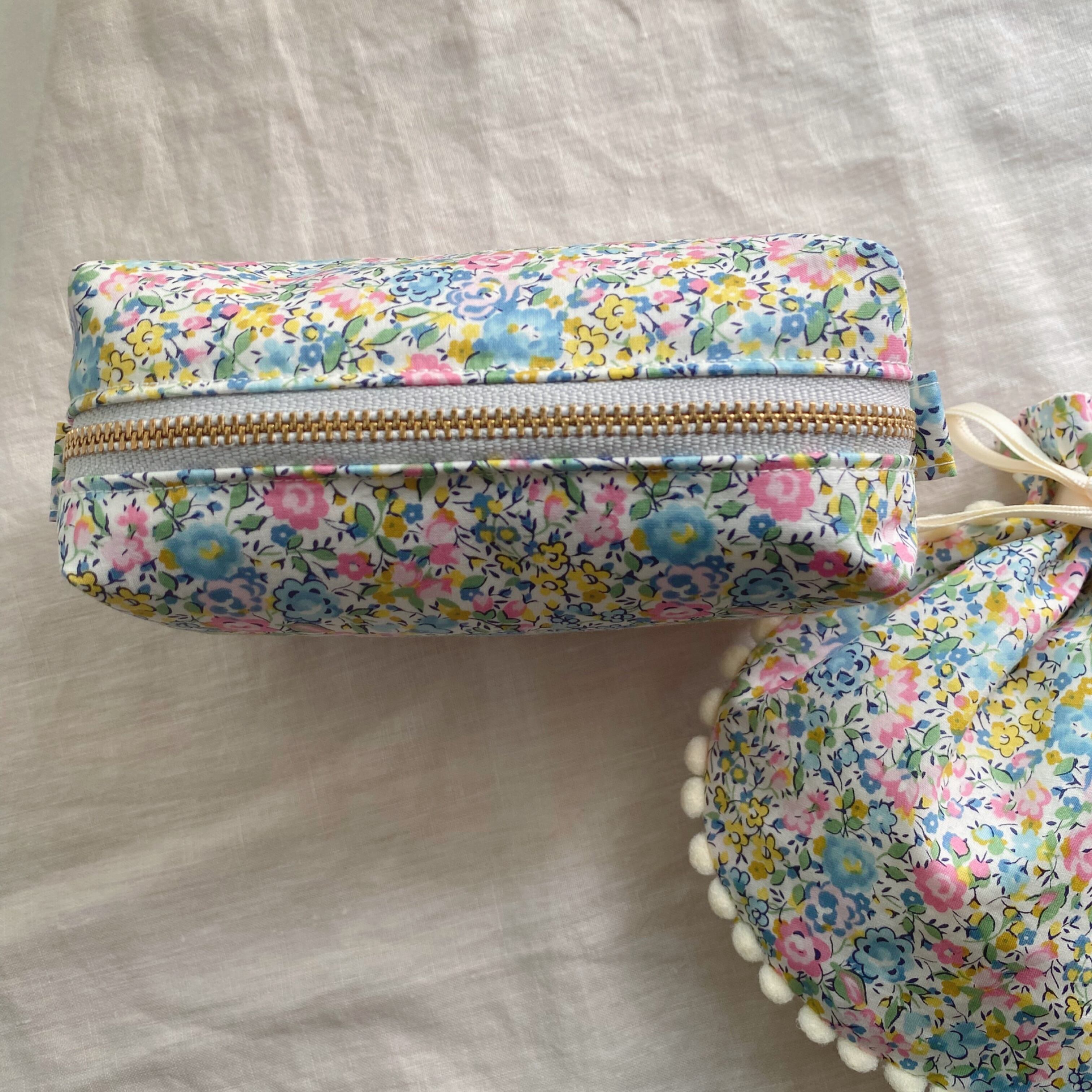 まるで小さな花束のようなリバティの巾着とボックスポーチを組み合わせたセットができました。