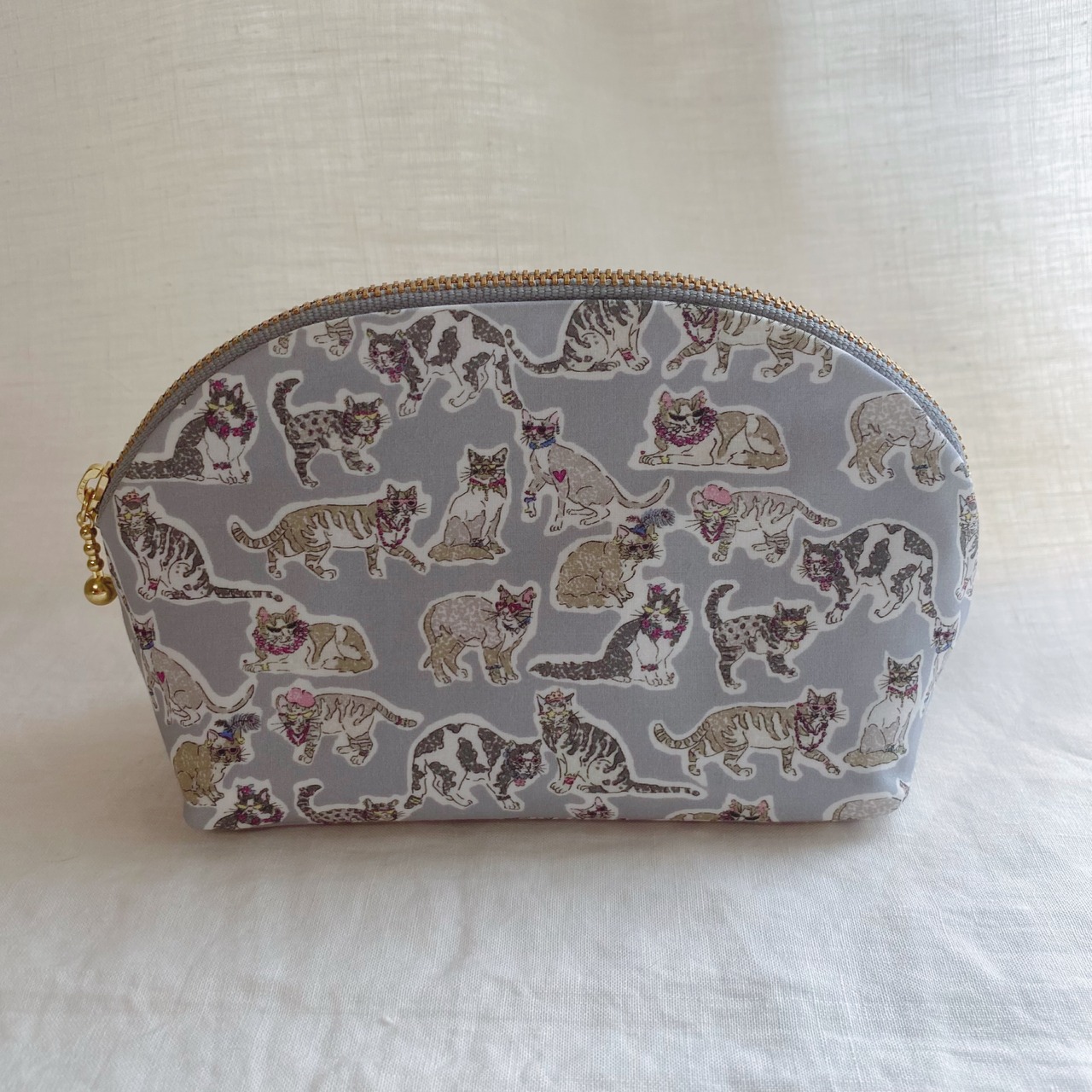 ネコ好きさんへのギフトにも、自分へのちょっとしたご褒美にもぴったりな、コロンと愛らしいシルエットのポーチです。